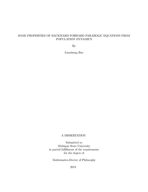 In this dissertation, we developed a new population dynamics model from probability theory and logistic model:\begin{eqnarray} u_t&=&(D(u)u_x))_x,\label{eq:0001} \\ D(u)&<&0, \quad \mbox{for} \quad u\in (0,\alpha);\quad D(u)>0 \quad \mbox{for} \quad u\in (\alpha,1).\label{eq:0002}\end{eqnarray} These equations describe population aggregation when the population density is small and diffusion when the population is large. When the net birth is also considered, the equation becomes:\begin{equation}\label{eq:0003} u_t=(D(u)u_x))_x+g(u).\end{equation}We assume that the net birth $g(u)$ satisfies\begin{equation}\label{eq:0004}g(0)=g(1)=0,\quad g(u)>0 \quad \forall u\in(0,1).\end{equation}Because of the singularity at point $u=\alpha$, we can not obtain the traveling wave solution easily by methods used for purely diffusion model (which means $D(u)\geq 0$ for all $u\in [0,1]$). In order to overcome this difficulty, we introduce a suitable definition of weak traveling wave solution and obtain the existence of the traveling wave solutions depending on the traveling wave speed $c$.\par Secondly, we consider some properties of the weak solution of Equation \eqref{eq:0001} with non-flux boundary conditions such as existence and nonexistence of the weak solution when $x\in \Omega\subseteq \mathbb{R}^1$ and the asymptotic behavior of the solution:\begin{equation}\label{eq:0005} \lim_{t\rightarrow+\infty}u(x,t)=\frac{1}{|\Omega|}\int_{\Omega}u(x,0)dx, \quad u(x,0)\geq \alpha.\end{equation}\par In the third part, we consider the original discrete model which has solution naturally under general initial condition. We first prove the discrete population density $0\leq u(j,t)\leq 1$ which satisfies our assumptions before deriving our new population model. Secondly, we obtain the asymptotic behavior of this discrete model when $u(j,0)\geq \alpha=1/2, j=0,1,2,\dots,N$ and $u(j,0)$ is monotone:\begin{equation}\label{eq:0006} \lim_{t\rightarrow +\infty}u(j,t)=\frac{1}{N-1}\sum_{j=1}^{N-1}u(j,0).\end{equation}When $N\leq4$ and $u(0,t)=u(N,t)=0$, we obtain the convergence results of the solutions as $t\rightarrow +\infty$ under very general initial conditions.One more very interesting question is: How does the forward region $Q_d^+(t)=\{(i,t)| u(i,t)\geq \alpha,i\in [1,2,3,\dots,N]\}$ and backward region $Q_d^-(t)=\{(i,t)| u(i,t)\leq \alpha,i\in [1,2,3,\dots,N]\}$ change as time progresses? We can prove under very general initial conditions:\begin{equation}\label{eq:0007} Q_d^+(t)\subseteq Q_d^+(t_1), \quad\forall t\leq t_1.\end{equation}\par In the last part, we consider the traveling wave solution for a cell-to-cell model with adhesion which is different to our first model. \begin{equation}\label{eq:0008} \rho_t= [ D(\rho)\rho_x]_x + g(\rho)\quad t\geq 0, \quad x\in \mathbb{R},\end{equation}with quadratic coefficient\begin{equation}\label{eq:0009} D(\rho) = 3\gamma \rho^2-4\gamma\rho+1,\end{equation}where $\rho(x,t)$ represent the cell density and $\gamma$ is the adhesive coefficient between cells. We obtain the following existence theorem:\\ $\mathbf{Theorem}$ Let $D(\rho)$ and $g(\rho)$ be given functions respectively satisfying \eqref{eq:0009} and \eqref{eq:0004} and $3/4\leq \gamma\leq 1$.There exists a value $c^*>0$, satisfying\begin{eqnarray*} &&\max\{D'(0)g(0), D'(\rho^{\sharp}(\gamma))g(\rho^{\sharp}(\gamma))\}\leq \frac{(c^*)^2}{4} \\ &&\leq \max\{\sup_{s\in(0, \rho^{\flat}(\gamma)]}\frac{D(s)g(s)}{s},\sup_{s\in(\rho^{\flat}(\gamma),1],\rho\neq\rho^{\sharp}(\gamma)}\frac{D(s)g(s)}{s-\rho^{\sharp}(\gamma)}\},\end{eqnarray*}such that Equation \eqref{eq:0008} has\par i) no weak traveling wave solution for $c c^*$.\par Where $(\rho^{\flat}(\gamma),\rho^{\sharp}(\gamma)) := (\frac{2\gamma-\sqrt{\gamma(4\gamma-3)}}{3\gamma},\frac{2\gamma+\sqrt{\gamma(4\gamma-3)}}{3\gamma})$.