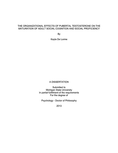 The organizational effects of pubertal testosterone on the maturation of adult social cognition and social proficiency