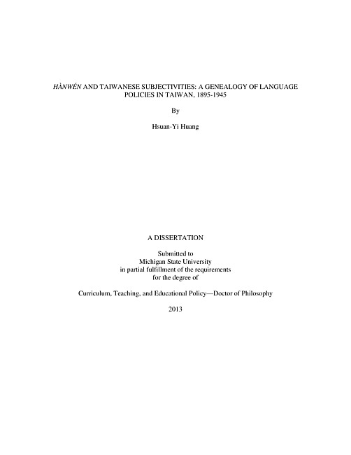 Hànwén and Taiwanese subjectivities : a genealogy of language policies in Taiwan, 1895-1945