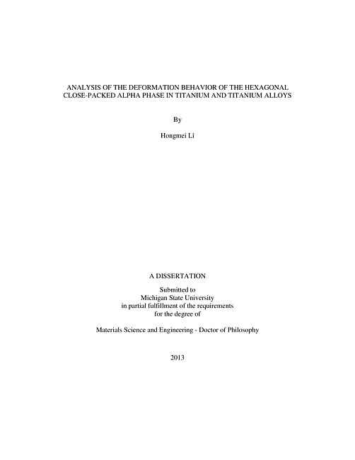 Analysis of the deformation behavior of the hexagonal close-packed alpha phase in titanium and titanium alloys