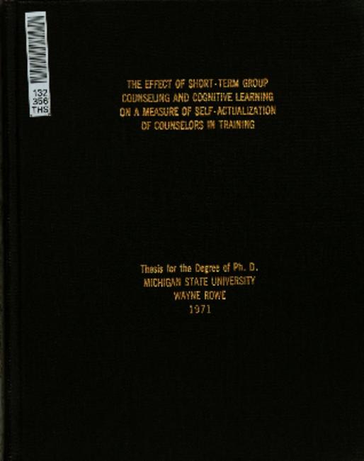 The effect of short-term group counseling and cognitive learning on a measure of self-actualization of counselors in training