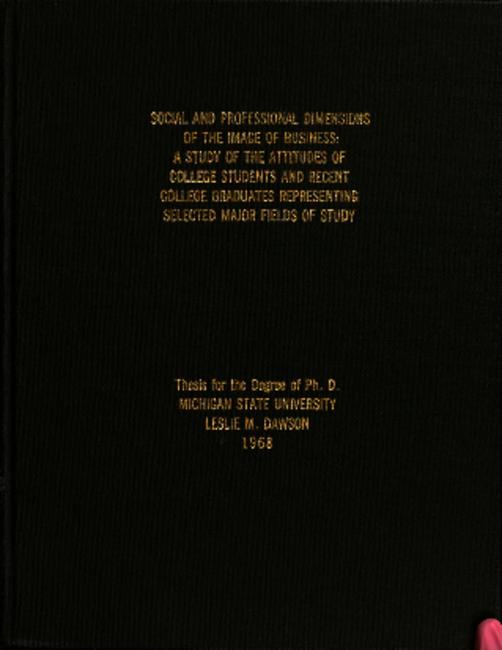 Social and professional dimensions of the image of business : a study of the attitudes of college students and recent college graduates representing selected major fields of study