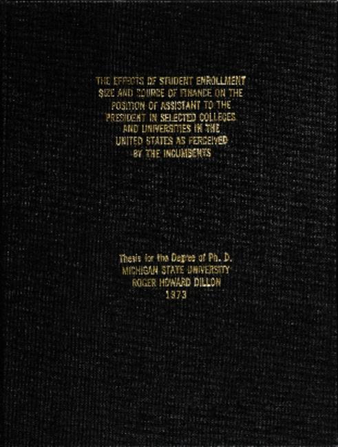 The effects of student enrollment size and source of finance on the position of assistant to the president in selected colleges and universities in the United States as perceived by the incumbents