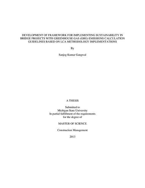 Development of framework for implementing sustainability in bridge projects with greenhouse gas (GHG) emissions calculation guidelines based on LCA methodology implementations