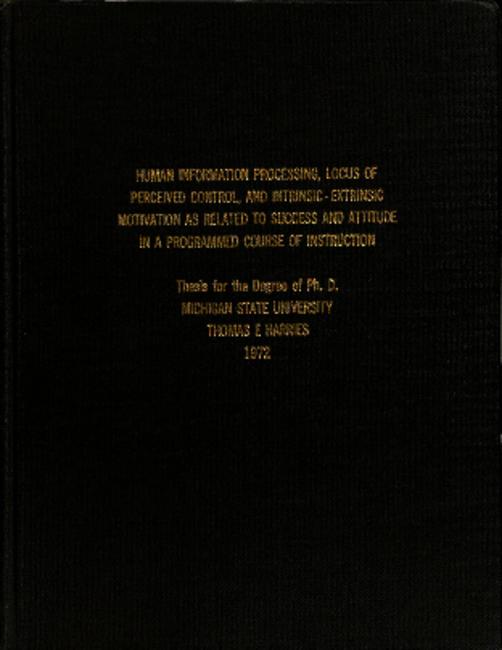 Human information processing, locus of perceived control, and intrinsic-extrinsic motivation as related to success and attitude in a programmed course of instruction