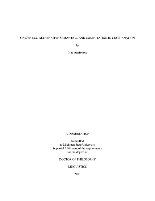 This dissertation tackles various puzzles at the syntax-semantics interface in coordination. The first question is whether different readings of natural language conjunction, such as coordinate and subordinate interpretations, can be deduced from a unifying syntax-semantics. I explore the behavior of both types of coordinate structures and attribute their distinct properties to the difference in syntactic representations. The new approach does not solve all puzzles, but it challenges the power of the standard semantics of conjunctions. This challenge is then addressed by the second research question.The second question is what is the appropriate semantics for natural language conjunctions. The traditional semantic approach assumes natural language conjunctions to be logical operators. However, it fails to capture various meanings of conjunctions and their scopal properties, asking for an alternative approach. I propose that natural language conjunction is a set forming operator and conjoined structures denote the set whose members are Hamblin alternatives created by the conjuncts. The new approach provides a better explanation of scope ambiguities in coordination. I further address this type of ambiguity in the third research question.The third question is how to implement a solution to the mapping problem from a computational point of view. The problem is that ambiguities in natural language create possible readings which can grow exponentially. Enumerating such readings is an onerous task. A much more efficient solution is to use underspecified semantic representations within a Minimalist Grammars formalism.