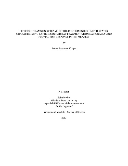 Effects of dams on streams of the conterminous United States : characterizing patterns in habitat fragmentation nationally and fluvial fish response in the Midwest