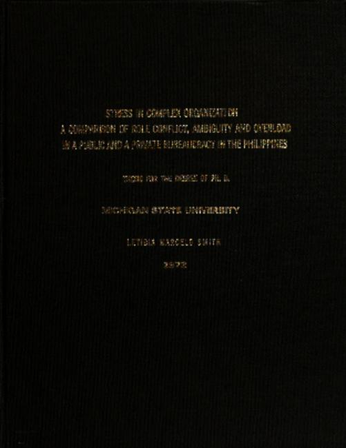 Stress in complex organization : a comparison of role conflict, ambiguity and overload in a public and a private bureaucracy in the Philippines