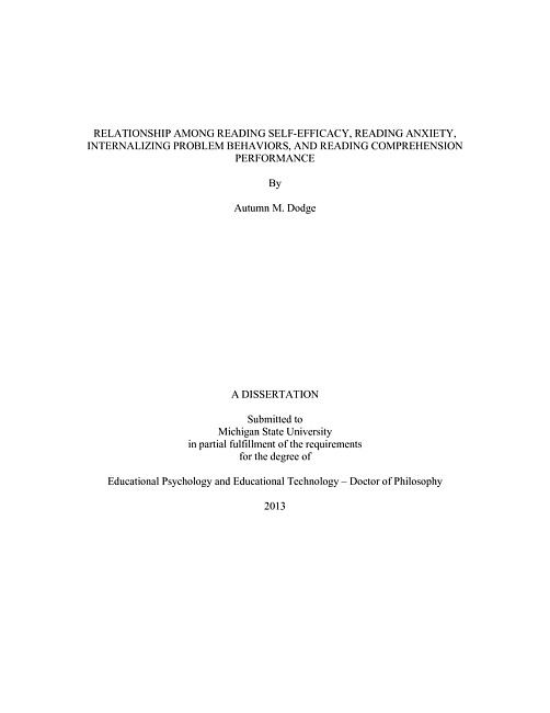 Relationship among reading self-efficacy, reading anxiety, internalizing problem behaviors, and reading comprehension performance