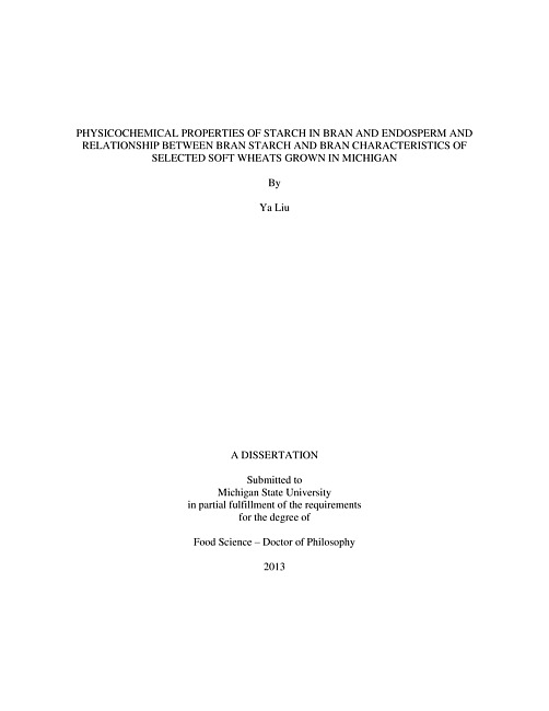 Physicochemical properties of starch in bran and endosperm and relationship between bran starch and bran characteristics of selected soft wheats grown in Michigan