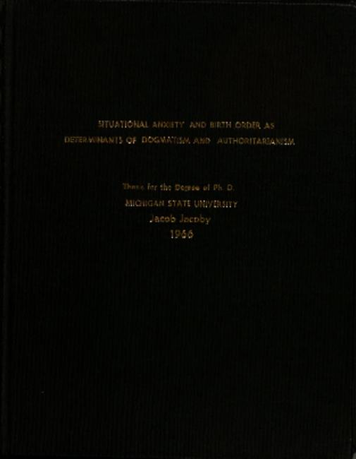 Situational anxiety and birth order as determinants of dogmatism and authoritarianism