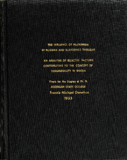 The influence of Platonism in Russian and Slavophile thought : an analysis of selected factors contributing to the concept of communality in Russia