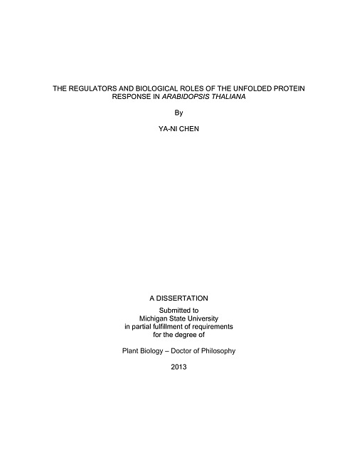 The regulators and biological roles of the unfolded protein response in Arabidopsis thaliana