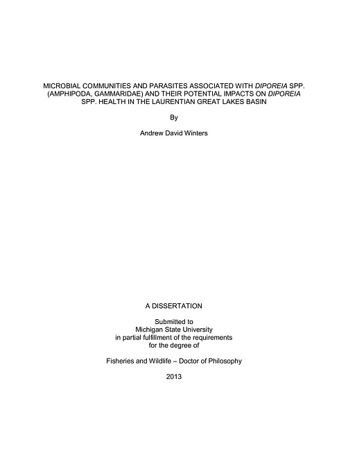 Microbial communities and parasites associated with Diporeia spp. (Amphipoda, Gammaridae) and their potential impacts on diporeia spp. health in the laurentian Great Lakes basin