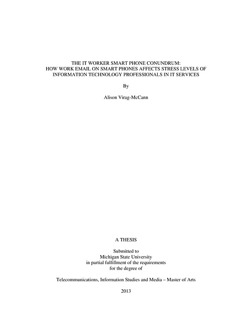 The IT worker smart phone conundrum : how work email on smart phones affects stress levels of information technology professionals in it services