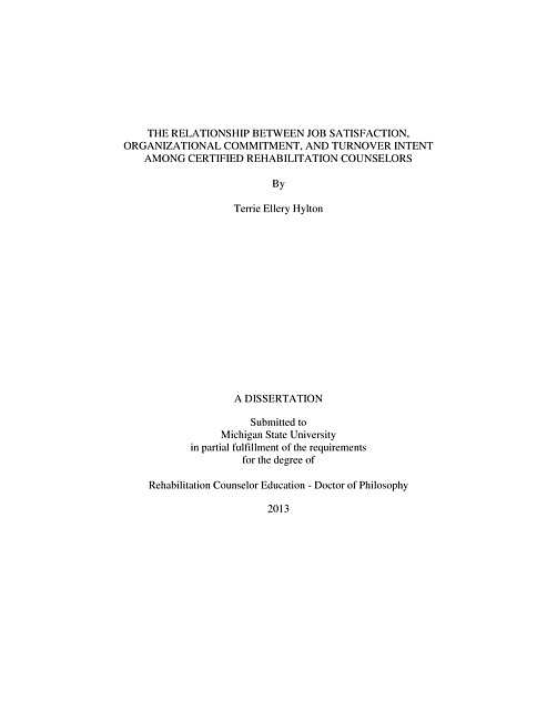 The relationship between job satisfaction, organizational commitment and turnover intent among certified rehabilitation counselors