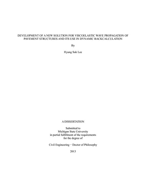 Due to the viscoelastic nature of asphalt materials and the dynamic nature of pavement structures, it is important to consider both effects simultaneously in modeling of asphalt pavements. In this study, a new computational algorithm, namely ViscoWave, has been developed and implemented for modeling the pavement dynamics and viscoelasticity under an impact load generated by a Falling Weight Deflectometer (FWD). The primary advantage of the proposed solution over some of the existing solutions is that it uses continuous integral transforms (Laplace and Hankel transforms) that are more appropriate for the FWD time histories whose signal characteristics are transient, nonperiodic, and truncated. Prior to the mathematical formulation of the developed algorithm, the fundamental properties of a viscoelastic material and the theory of uniaxial viscoelasticity are reviewed. Then, the theory of linear, uniaxial viscoelasticity is extended to multi-axial viscoelasticity. The multi-axial theory of viscoelasticity is, in turn, applied to develop a methodology for analyzing the laboratory Indirect Tensile (IDT) test data.The theoretical development of ViscoWave follows similar steps to those used for the development of the spectral element method. However, in place of the discrete transforms adopted in the spectral element method, ViscoWave utilizes the continuous integral transforms (namely Laplace and Hankel transforms) that are more appropriate for transient, nonperiodic signals. The theory behind ViscoWave was verified by comparing the ViscoWave simulation results to other existing solutions such as the Finite Element Analysis (FEA) and spectral element method. To backcalculate the pavement layer parameters, two of the well known unconstrained optimization algorithms (Gauss-Newton and Levenberg-Marquardt methods) were adopted for use with ViscoWave. The backcalculation was conducted using both theoretically-generated and field-obtained FWD time histories. The results indicate that ViscoWave has great potential for modeling the viscoelastic and dynamic effects of a pavement structure under an impact load.