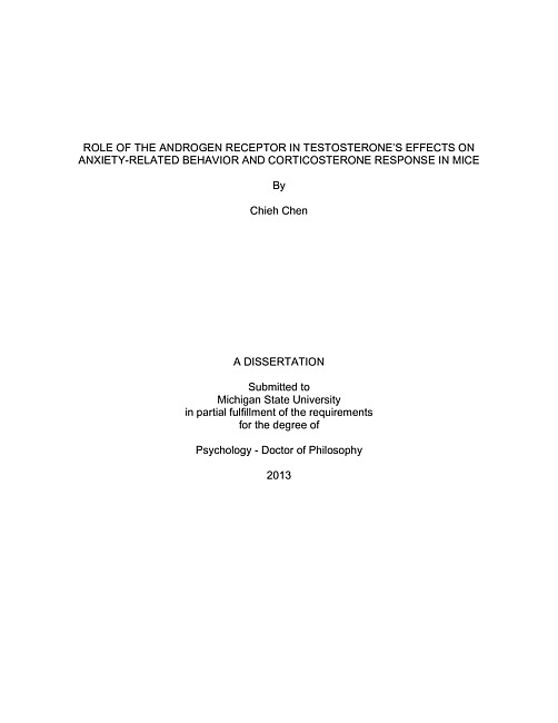 Role of the androgen receptor in testosterone's effects on anxiety-related behavior and corticosterone response in mice