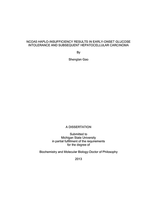 Ncoa5 haplo-insufficiency results in early-onset glucose intolerance and subsequent hepatocellular carcinoma