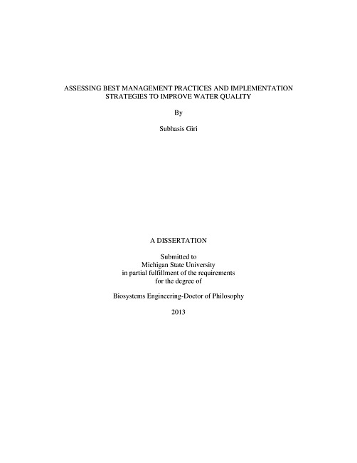 Best management practices (BMPs) are widely accepted to control both point and nonpoint source pollution. However, the placement and selection of BMPs plays a vital role in pollution reduction. Therefore, the objectives of this study were (1) to identify pollution generating areas priority areas (high, medium, and low) using four different targeting methods: concentration impact index (CII), load impact index (LII), load per subbasin area index (LPSAI), and load per unit area index (LPUAI), (2) to apply BMPs in the identified priority area to evaluate effectiveness, (3) to assess the spatiotemporal variability of critical source areas (CSAs), and (4) to identify the best BMP and implementation site considering social, economic, and environmental issues using different spatial targeting methods. Ten BMPs were implemented in the identified priority areas in the Saginaw River Watershed by the four targeting methods using the Soil and Water Assessment Tool (SWAT). Analytical hierarchy process (AHP) was used to compare influential criteria with different weights during the BMP selection process. Results suggest that the LPSAI is the best method for sediment targeting whereas the CII is the best method for total nitrogen (TN) and total phosphorus (TP) targeting. Terraces and native grass were the most effective BMPs whereas conservation tillage and no-till were the least effective BMPs both at subbasin and watershed level analysis. In regard to the spatiotemporal variability in the CSAs, a distinct change in high priority areas ranking was observed due to native grass implementation by the end of second year whereas a minimal change in high priority areas was found in case of contour farming due to the greater pollution reduction capacity of native grass compared to contour farming. Based on environmental, economic, and social issues, strip cropping was preferred in all CSAs based on the subbasin level analysis while strip cropping and residue management were preferred in the CSAs for the watershed outlet analysis.