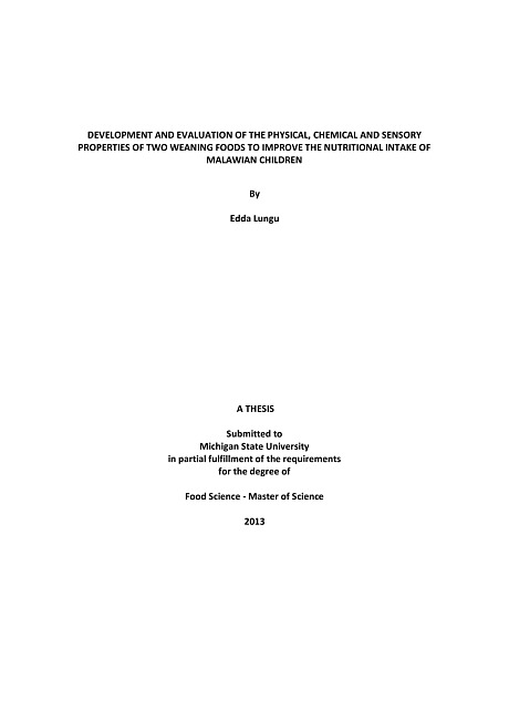 Development and evaluation of the physical, chemical and sensory properties of two weaning foods to improve the nutritional intake of Malawian children