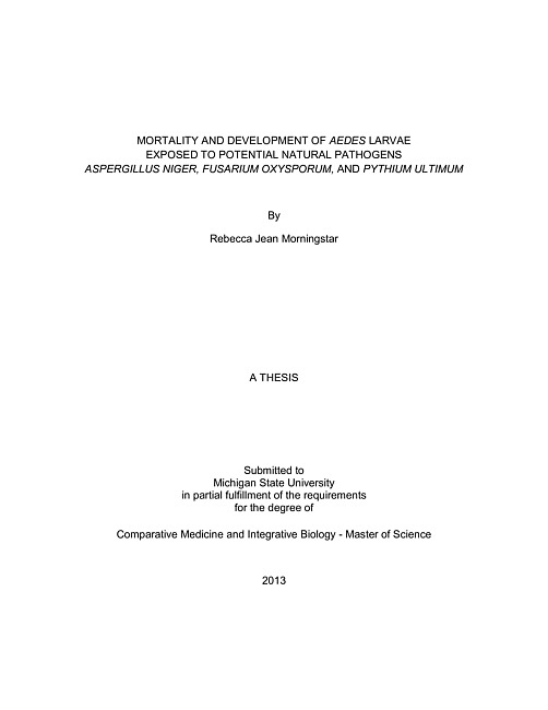 Mortality and development of Aedes larvae exposed to potential natural pathogens Aspergillus niger, Fusarium oxysporum, and Pythium ultimum