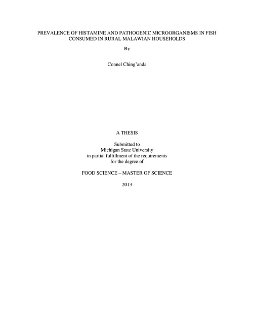 Prevalence of histamine and pathogenic microorganisms in fish consumed in rural Malawian households