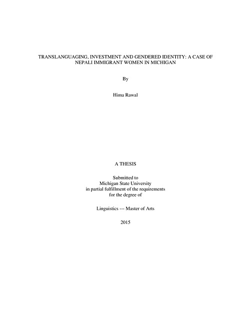 Translanguaging, investment and gendered identity : a case of Nepali immigrant women in Michigan