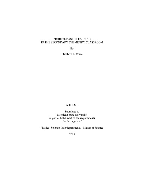 This study investigated the use of project-based learning (PBL) in a high school chemistry classroom. PBL encourages the use of projects, which promote continual learning, rather than a summative project at the end of a unit after the learning has already been done. Along with implementing PBL, the study also incorporated many of the strategies included in the broader strategy known as Assessment for Learning (AfL), which stresses developing assessments that are part of the learning process rather than simply a measurement of the amount of learning that has occurred upon completion of a unit. The hypothesis of this research was that PBL would increase student comprehension and motivation as measured through pre and post-test data and a student survey. The new project-based unit required students to research and present the properties and structures of elements and how we use them. The expectation was that this approach would engage students with the material, the computer modeling would allow for more concrete visualization of structures and the project-based format would allow students to become more invested in their own learning. This study provided evidence to support the hypothesis that the implementation of project-based learning, supported by formative assessment and other assessment for learning strategies, will improve student comprehension and motivation in the secondary chemistry classroom.