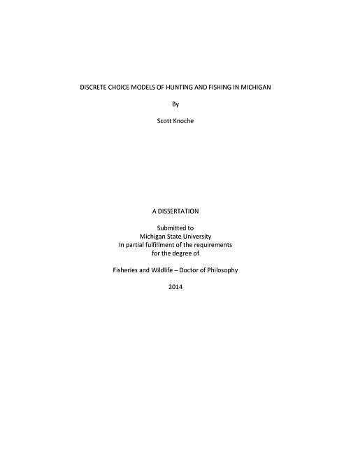 In this dissertation I employ multiple discrete choice modeling methods and data collection approaches to make both methodological and empirical contributions which focus on a variety of management-relevant programs and policies. In dissertation chapter 1, I examine the potential for researchers to estimate recreation demand models using widely available secondary data on recreation site choice that lacks some income and trip details. I find that substituting zip-code median income for individual-reported income, and constructing estimates of trips based on days spent hunting and the distance of the hunting site from the individual's residence, generate welfare estimates that are similar to results using individual-reported information on income and trips. This research indicates potential for utilizing a wide range of previously ignored recreation site choice data for recreation demand modeling purposes. Dissertation chapters 2 and 3 are supported by the procedure developed in dissertation chapter 1. Dissertation chapter 2 estimates a discrete choice model of ruffed grouse hunting in Michigan with the objective of estimating both the economic benefits of all publicly accessible hunting land in Michigan for ruffed grouse hunters and the potential changes to ruffed grouse hunter economic benefits as a result of a proposal to ban the use of firearms in approximately 67,000 acres of national forest wilderness area. Economic benefits of publicly accessible hunting land for ruffed grouse hunters in Michigan was estimated to be about $30 million in 2008, with economic benefits of the 67,000 acres of national forest wilderness area to ruffed grouse hunters estimated at about $45,000. Dissertation chapter 3 estimates the economic benefits of the USDA Conservation Reserve Program for pheasant hunters in Michigan by linking a previously developed spatially explicit, landscape based model of pheasant sightings to a discrete choice model of pheasant hunter site choice. Chapter 3 also estimates the potential economic benefits generated through the initiation of a multi-agency and stakeholder pheasant habitat restoration plan. Results show that economic benefits for pheasant hunters depend critically on restoration site selection. Dissertation chapter 4 uses a choice experiment survey of Michigan trout anglers to examine the willingness of anglers to make tradeoffs between changes in driving distance to a fishing site and changes in attributes available at fishing sites. On average, trout anglers prefer higher catch rates, shorter travel distances to a fishing site, and are highly averse to strict fishing regulations such as catch-and-release only and artificial flies only regulations. However, there is evidence of preference heterogeneity within the trout angler population for these regulations, with some anglers preferring (all else equal) to fish in areas with these restrictions. This distribution of angler preferences is used to examine the proportion of anglers who can be made better off when strict regulations induce catch-related quality improvements at a fishing site.