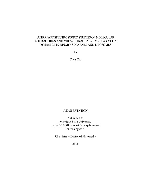 Ultrafast spectroscopic studies of molecular interactions and vibrational energy relaxation dynamics in binary solvents and liposomes