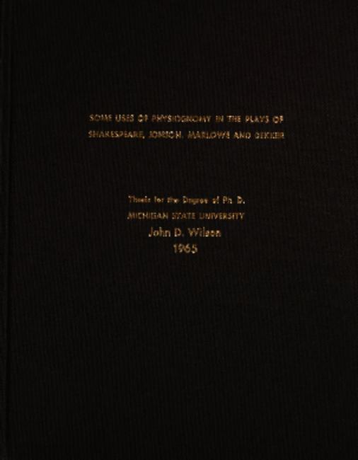 Some uses of physiognomy in the plays of Shakespeare, Jonson, Marlow and Dekker