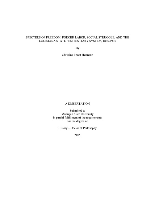 Specters of freedom : forced labor, social struggle, and the Louisiana State Penitentiary system, 1835-1935