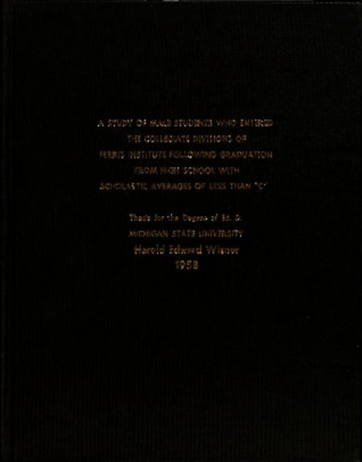 A study of male students who entered the collegiate divisions of Ferris Institute following graduation from high school with scholastic averages of less than "C"