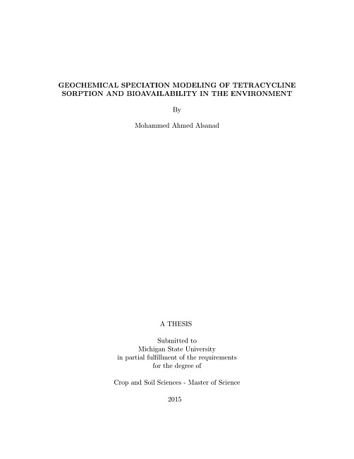 Geochemical speciation modeling of tetracycline sorption and bioavailability in the environment