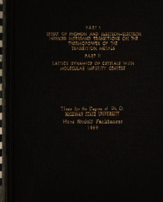 Part I: Effect of phonon and electron-electron induced interband transitions on the thermopower of the transition metals. Part II: Lattice dynamics of crystals with molecular impurity centers