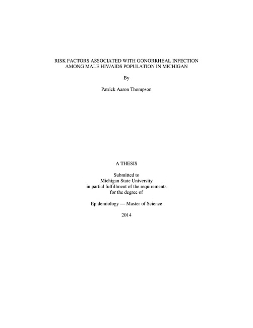 Risk factors associated with gonorrheal infection among male HIV/AIDS population in Michigan