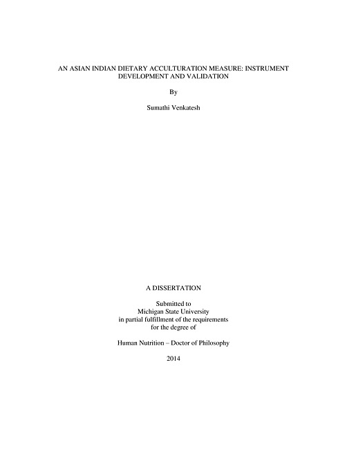 An Asian Indian dietary acculturation measure : instrument development and validation