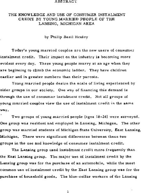 The knowledge and use of consumer instalment credit by young married people of the Lansing, Michigan area