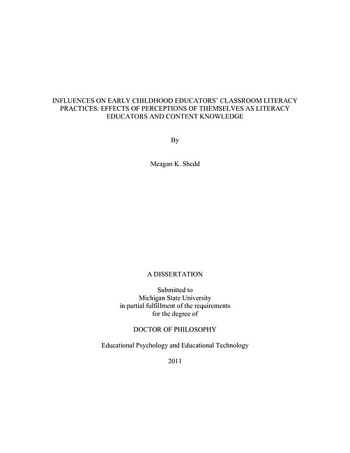Influences on early childhood educators' classroom literacy practices : effects of perceptions of themselves as literacy educators and content knowledge