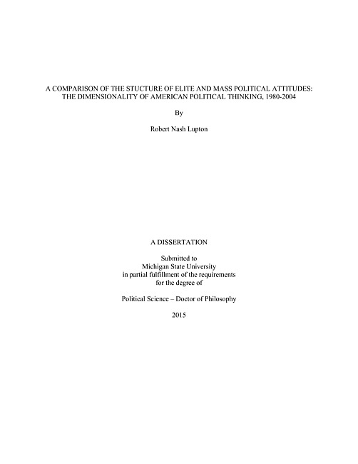 A comparison of the stucture of elite and mass political attitudes : the dimensionality of American political thinking, 1980-2004