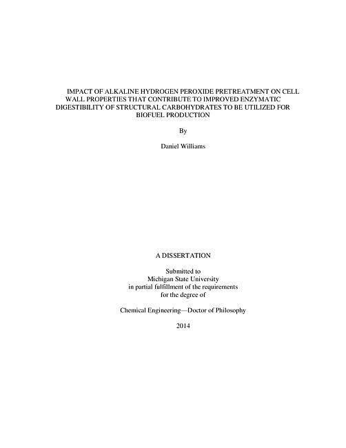 Impact of alkaline hydrogen peroxide pretreatment on cell wall properties that contribute to improved enzymatic digestibility of structural carbohydrates to be utilized for biofuel production