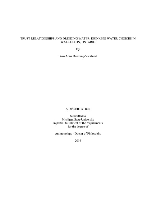 Trust relationships and drinking water : drinking water choices in Walkerton, Ontario