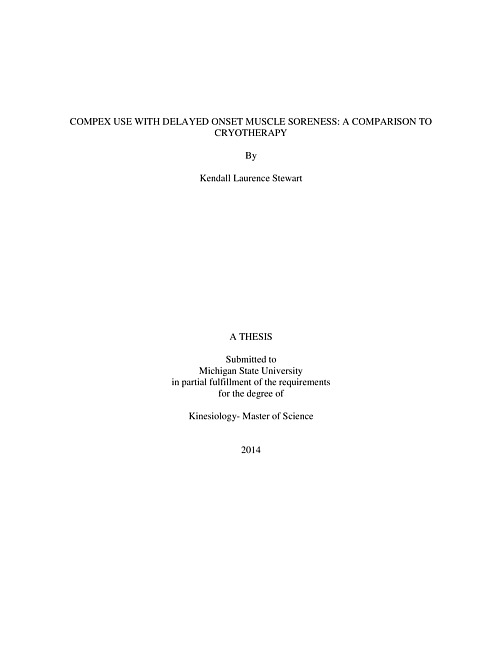 Compex use with delayed onset muscle soreness : a comparison to cryotherapy