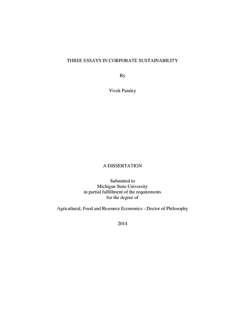 This dissertation research is motivated by concerns regarding lack of strategic linkages between the corporate sustainability strategy, the business strategy and the sustainability context. The dissertation consists of three essays.Essay one investigates the short term linkages between business sustainability and corporate financial performance (CFP) for the large U.S. based firms (by market value). Entry and exit from Dow Jones Sustainability Index (DJSI) has been used as a proxy for overall corporate sustainability performance (CSP) of the firm. Firms' financial performance is evaluated through stock market returns estimated during the event window. GARCH based event study methodology has been used to analyze the sustainability - performance link. Results indicate that although selection or exclusion from DJSI did not affect the volatility of stock returns, the cumulative stock market returns for newly added firms declined by 1.36% during CAR (-5, +2). In comparison to the inclusion events, no significant market reaction to index exclusions is observed. Analysis of descriptive statistics indicates that the long term financial performance of DJSI companies is at par with the S&P500 firms, thereby suggesting dichotomous impacts of CSP on CFP in the short and long term. Essay 2 seeks to explore the concept of Corporate Sustainability Performance (CSP) and accompanying constructs such as CSR processes and CSR initiatives. The authors posit a new conceptual model of CSP by synthesizing the review of three distinct generations of CSR and CSP theoretical frameworks and several currently used corporate sustainability assessment methodologies. The extant literature has mostly analyzed these concepts, at best individually and while in several studies they have been confused with one another. Therefore the primary objective is to align these concepts in a common framework known as the CSP conceptual model. Existing models on CSP and Corporate Social Responsibility (CSR) have been categorized into three phases of development and combined with the analysis of current sustainability assessment methodologies, 3 primary constructs and 8 associated concepts have been identified. A total of 9 research propositions have been put forward to explain the nomological relationships in the conceptual model. Essay three seeks to identify critical attributes and attribute components of corporate sustainability strategy for global agri-food companies. Semi-structured interviews with 16 sustainability experts from three groups of stakeholders: agri-food businesses, NGOs, and knowledge institutions were conducted. Results from interviews indicate that the five most critical attributes for leading and minimally effective sustainable agri-food companies are: (1) Processes to identify sustainability issues, (2) Engagement with MSGs, (3) Resource commitment to sustainability, (4) Integration of sustainability with traditional management systems, and (5) Measurement of sustainability outcomes. The thematic network analysis of qualitative data pertinent to leading sustainable agri-food firms revealed four global themes around which 16 organizing themes and 52 basic themes were found to be clustered. The four global themes are (1) Sustainability strategy is integral to corporate strategy, (2) Materiality considerations guide CSS, (3) Corporate Sustainability is multi-dimensional, and (4) Focus of CSS is both on internal and external aspects.