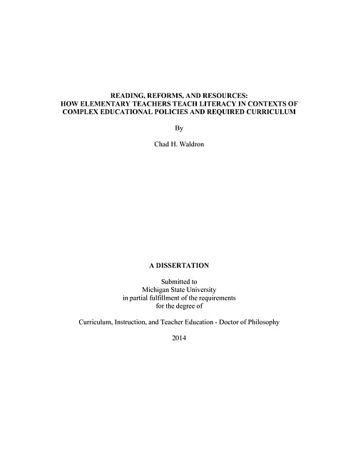 Reading, reforms, and resources : how elementary teachers teach literacy in contexts of complex educational policies and required curriculum