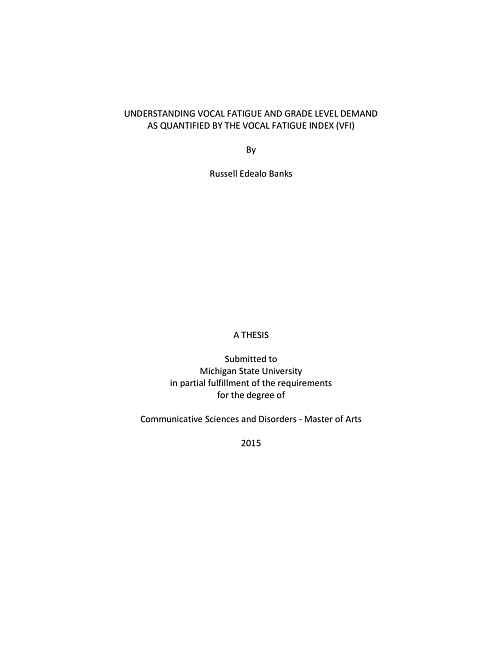 Understanding vocal fatigue and grade level demand as quantified by the vocal fatigue index (VFI