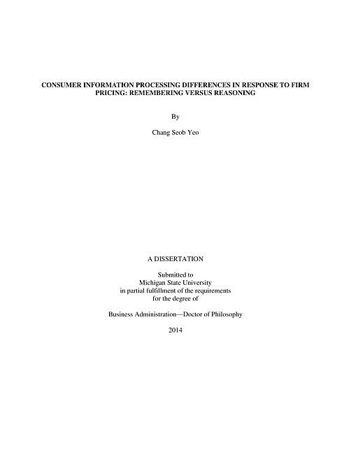 Consumer information processing differences in response to firm pricing : remembering versus reasoning