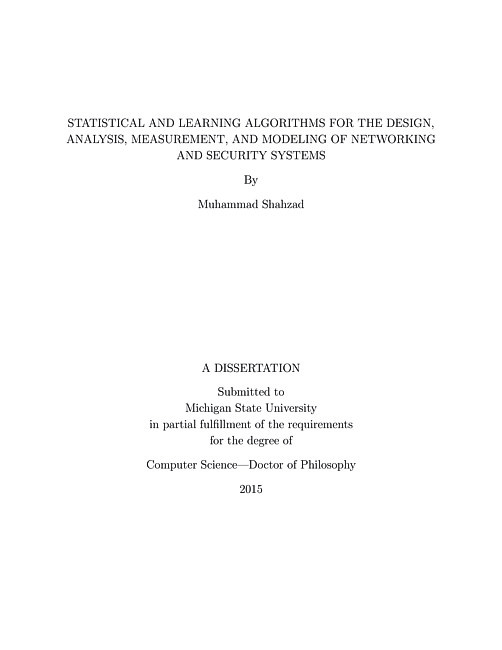"The goal of this thesis is to develop statistical and learning algorithms for the design, analysis, measurement, and modeling of networking and security systems with specific focus on RFID systems, network performance metrics, user security, and software security. Next, I give a brief overview of these four areas of focus." -- Abstract.