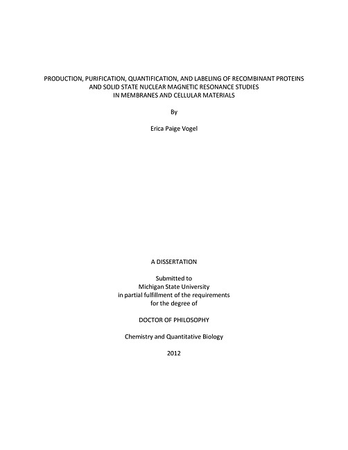 Production, purification, quantification, and labeling of recombinant proteins and solid state nuclear magnetic resonance studies in membranes and cellular materials